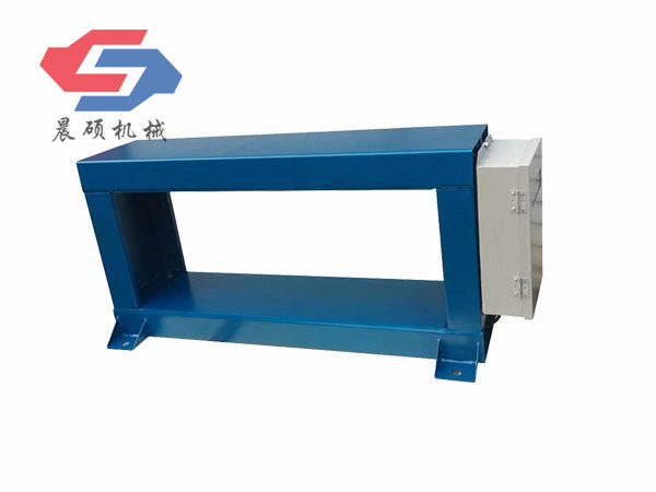 電磁除鐵器的基礎(chǔ)上增加了驅(qū)動電機、滾筒、帶刮板的缷鐵膠帶等組成的缷鐵機構(gòu)。在工作過程